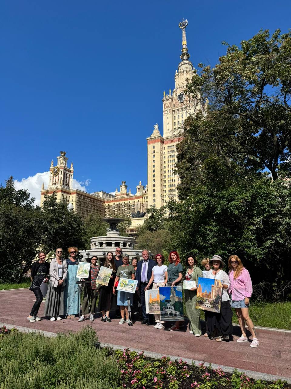 6 августа 2025 года в парке перед Главным зданием МГУ им. М. В. Ломоносова прошел пленэр московских художников на тему Вода Москвы - Фонтаны города Москвы - Москва город 600 фонтанов. Пленэр проводится в рамках грантовой программы Мэра г. Москвы и при поддержке КОС Правительства г. Москвы. Организаторами выступили Институт СТЭИ в лице В. О. Петрова и ГБУК г. Москвы Библиотека - музей «Дом А. Ф. Лосева» в лице директора В. Е. Коптева-Дворникова. Перед художниками и студентами МГУ выступил Заместитель Председателя Московской городской Думы С. В. Орлов. Работы московских художников планируется выставить в Парламентской библиотеке Мосгордумы и в Доме А. Ф. Лосева Цель проекта — обратить внимание на фонтаны как важнейшие элементы городской среды, объединяющие в себе эстетику, инженерную мысль и культурную память. В пленэре приняли участие 12 художников объединенных Центром международного и культурно-делового сотрудничества «Культура для жизни», среди них: Инна Вольвак, Елена Пешкова, Марина Смирнова, Александр Батурин, Инна Вольская, Софья Моргунова, Юлия Бружайте, Елена Кобякова, Ирина Коваленко, Ольга Городецкая, Елена Бугаря, Иван Ятченко. Кураторами выступили Галина Мерзликина и Ольга Полянцева. На мероприятии выступил депутат Московской городской Думы Степан Владимирович Орлов, который отметил: «Главное здание МГУ — один из самых узнаваемых архитектурных символов Москвы и всей страны. Это не просто ВУЗ, это настоящий памятник эпохе, объединяющий науку, культуру и искусство. Фонтаны, украшающие территорию перед зданием, — неотъемлемая часть этого уникального ансамбля. Они придают пространству живую динамику, создают атмосферу величия и одновременно уюта. Важно, что сегодня мы не просто любуемся этим ансамблем, но и задумываемся, о роли таких объектов в формировании комфортной и по-настоящему живой городской среды. Бережное отношение к таким местам — это наша общая задача, и это вклад в будущее Москвы как города с душой, памятью и характером.» И директор научной библиотеки «Дом А.Ф.Лосева» Владимир Евгеньевич Коптев-Дворников,, рассказавший: «Проект «#Вода Москвы — город 600 фонтанов» направлен на изучение, популяризацию и сохранение фонтанов как важнейшей части городской среды, символа культурной памяти, инженерной мысли и эстетической ценности. Главное здание МГУ построено в стиле монументальный классицизм с элементами ар-деко и русской архитектурной традиции. Автором проекта выступил выдающийся советский архитектор Лев Владимирович Руднев, известный вниманием к композиционным деталям. Он рассматривал фонтаны как неотъемлемую часть ансамбля, подчеркивающую ритмику пространства, создающую ощущение торжественности, но не замкнутости. Вода «оживляет» гранит и бетон, делает пространство гуманным, живым, наполненным светом и звуком.» О важности городских пленэров рассказала Галина Мерзликина, президент Центра международного и культурно-делового сотрудничества «Культура для жизни»: «Городской пленэр — это не просто живопись на открытом воздухе. Это способ посмотреть на город внимательнее, глубже, бережнее. Через художественный взгляд формируется общественное сознание, которое способно не только видеть красоту, но и защищать её . Художник, работая на пленэре, буквально вглядывается в объект — будь то фонтан, здание или 